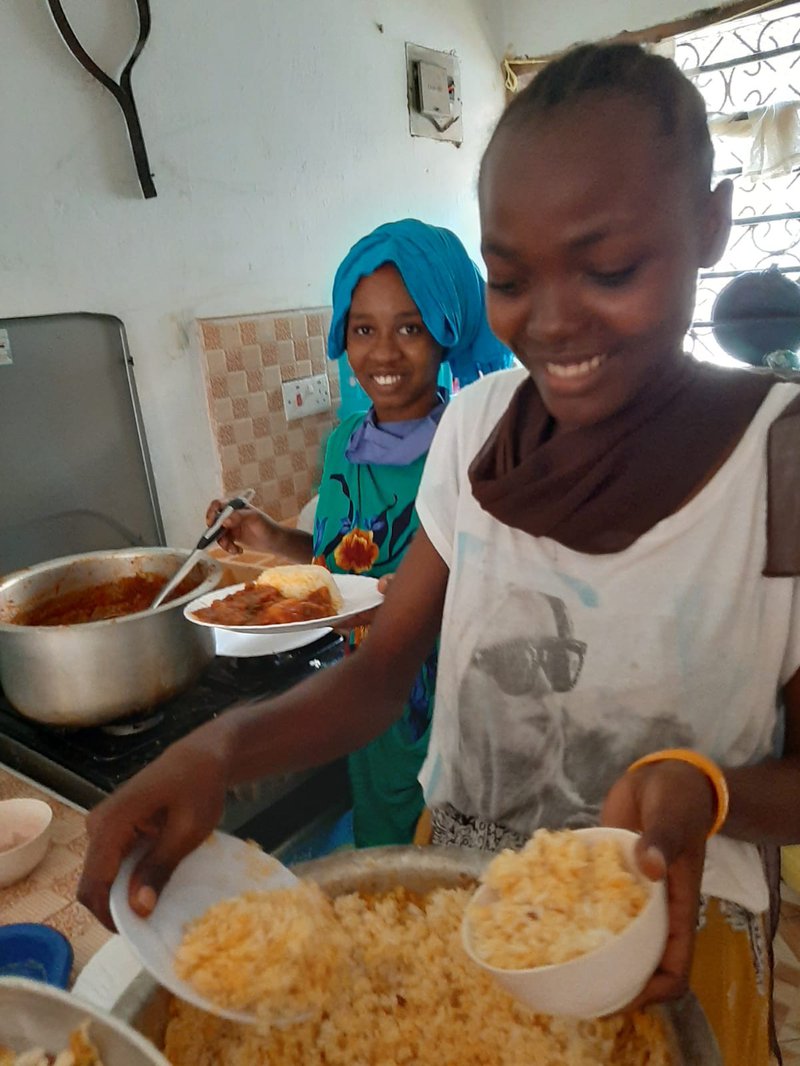 Während der letzten 7 Monate wurde kontinuierlich für 8 Mädchen von montags bis freitags ganztägig Nähunterricht durchgeführt. Madame Mwanakombo Bakari, die Frau unseres Arztes lehrt die Schülerinnen Reparaturarbeiten und neue Kleidung anzufertigen.