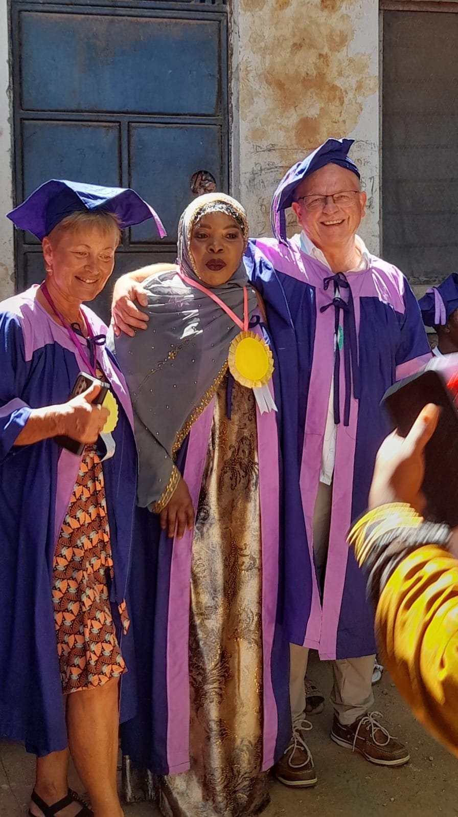 Wir besuchten Kenia wieder gemeinsam und haben sehr viel bewegen können. Ein besonderes Ereignis war die Feier anlässlich des Examensabschlusses der Nähschule für zwanzig Mädchen. Nach zwei Jahren fleißigen Lernens haben sie ihre Abschlussprüfung bestanden und es erfolgte die Übergabe der Zertifikate und der Nähmaschinen an die jungen Frauen. Hunderte Gäste, darunter Vertreter aus Politik, Presse und Fernsehen, verfolgten die Feierlichkeiten. Wir sind stolz auf „unsere Mädchen“. Nun können zwanzig neue Nähschülerinnen aus sehr armen Verhältnissen ihre kostenfreie Ausbildung starten.